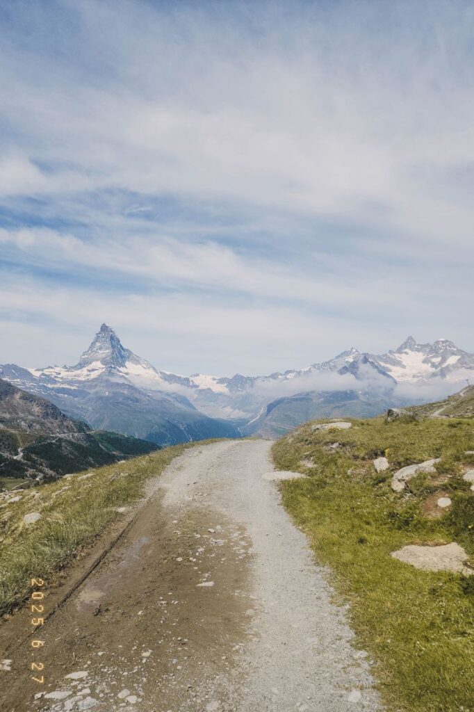 不過對我來說,這趟健行最難忘的,不只是第一與第五個湖帶來的震撼美景,而是一路上在不同角度欣賞 馬特洪峰的過程。隨著路線的轉折與海拔的變化,馬特洪峰的形狀、光影與顏色也跟著改變 — 有時清晰挺立,有時隱約藏在雲霧之間,但無論怎麼看,它都靜靜地矗立在那,彷彿在守護整個策馬特山谷。