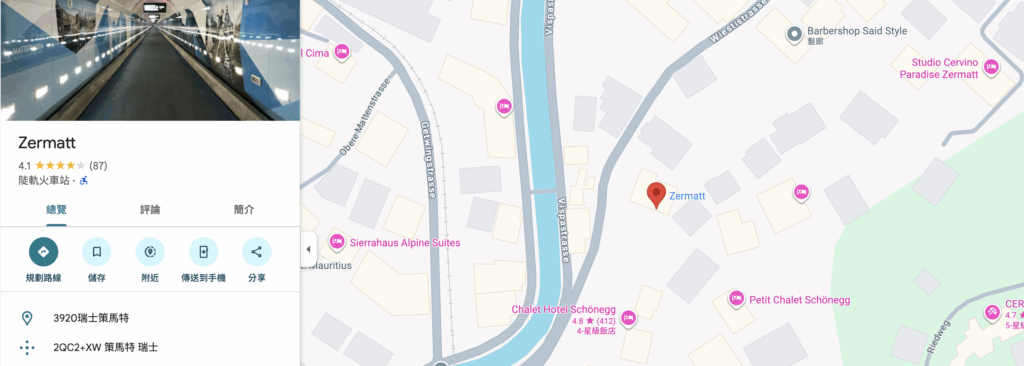 從 Zermatt 出發的搭乘地點不在火車站附近,而是以下地點: (Google 連結)